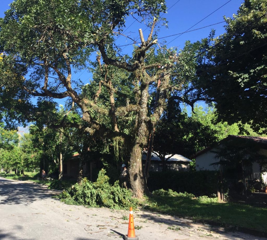 Tal parece, que la renovación del cableado no podía llevarse adelante de ninguna otra manera que no fuera cortando ramas a diestra y siniestra. Algo a lo que nos tiene acostumbrados la empresa de energía eléctrica. No podemos minimizar este tipo de accionar, por muy avalado que pueda llegar a estar, se trata de tener respeto por la naturaleza, de valorarla y tomar las medidas necesarias para no dañarla, tener respeto y conciencia ecológica.