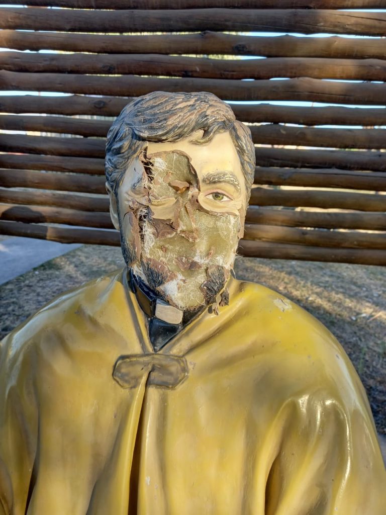 Según consta en las actuaciones, en su raid, el acusado causó daños a un automóvil -, propiedad de uno de los denunciantes-, al que arrojó una piedra y ocasionó la ruptura total del parabrisas; a la terminal de recarga electrónica de la empresa SAETA y un farol de iluminación pública, ambos ubicados en la plaza central de Rosario de Lerma “Cnel. Vicente Torino de Viana”; y en los baños públicos del parque Evita. El daño más grave fue el causado a la estatua en honor del sacerdote Sigfrido “Chifri” Moroder.