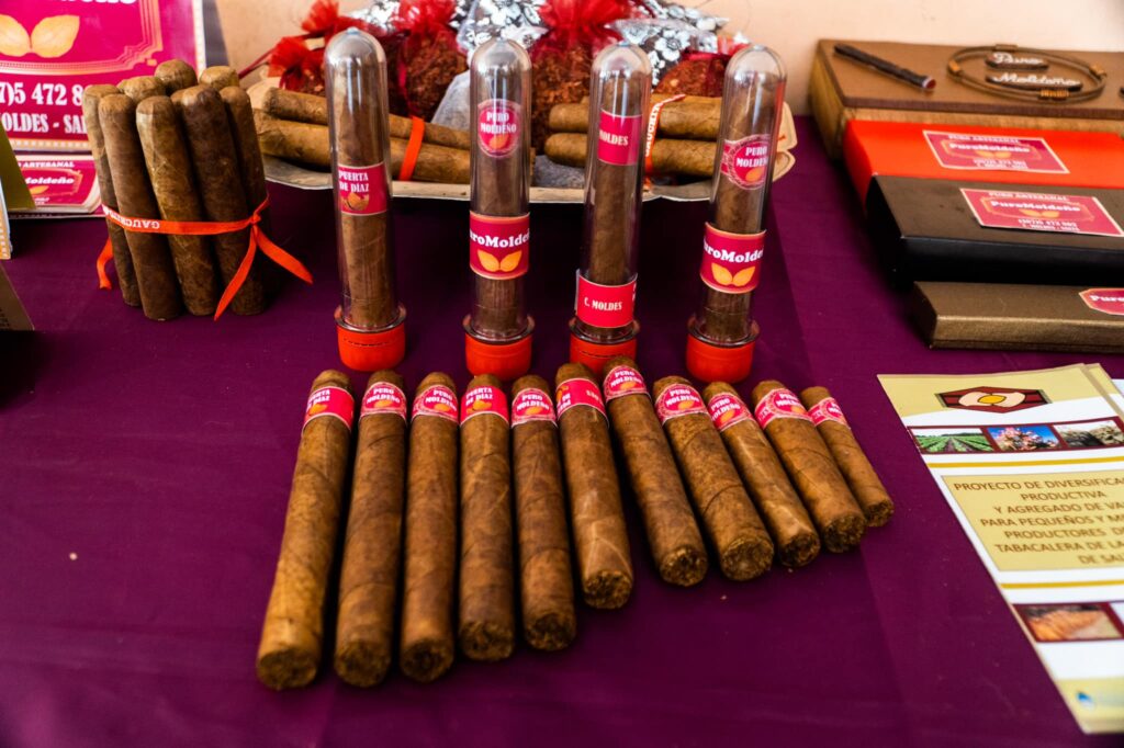 Hoy desde Coronel Moldes y con gran éxito de ventas, ellas comercializan los cigarros “Puros Moldeños, de buen aroma y sabor”. En su stand muestran todo el proceso de producción y orgullosas explica cómo los realiza con sus manos. “Somos los únicos que hacemos estos cigarros puros en el Valle de Lerma”, explicó Delia con relación a este emprendimiento que ya tiene seis años.