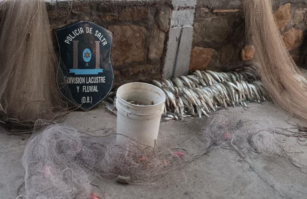 El operativo se realizó a las 03, altura del Mateo Viejo, logrando el secuestro de redes de pesca que contenían 800 ejemplares de pejerrey, y 450 mojarras.