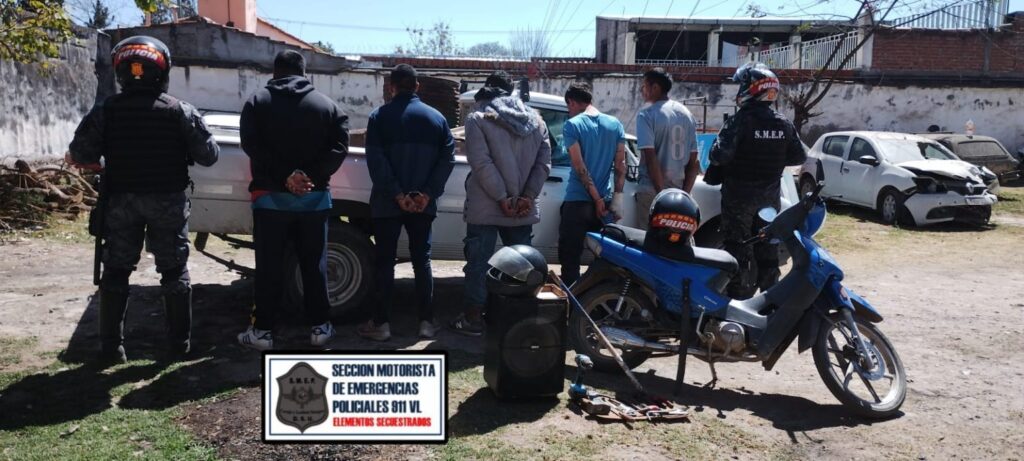 Siguiendo las características se localizó el vehículo denunciado. Al identificar a los ocupantes, tres hombres de 27, 28 y 41 años, se procedió a su detención y al secuestro de la camioneta, así como de un parlante, herramientas varias y un mapa con casas marcadas. Los 5 delincuentes, se estima miembros de la misma banda, quedaron detenidos.