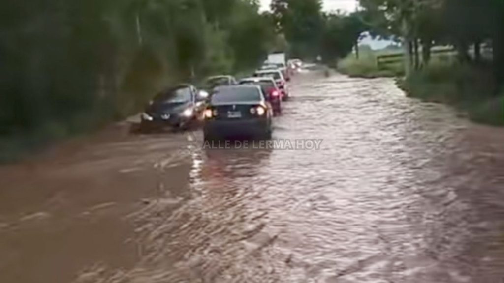 La intensidad de la lluvia provocó una importante acumulación de agua sobre la calzada de la Ruta Nacional 68, especialmente en el tramo que une La Merced con El Carril, donde el camino se volvió extremadamente peligroso para automovilistas y motociclistas, con arrastre de sedimentos.