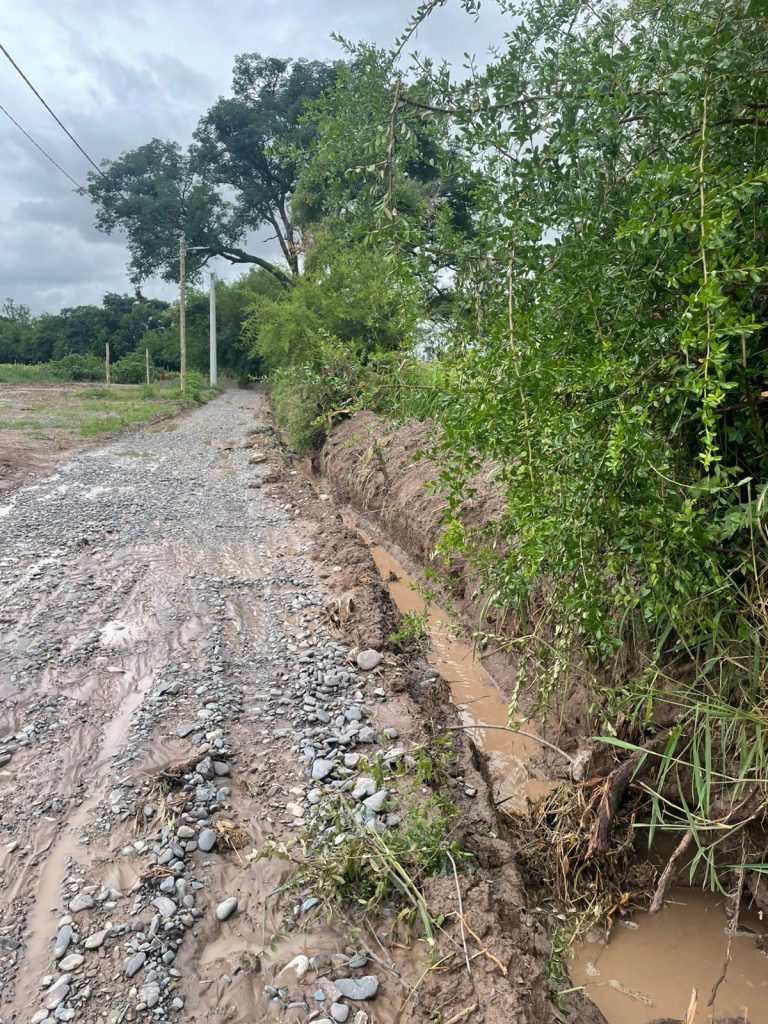 En tanto, en el barrio Santa Rita I, se registró el ingreso de agua a una vivienda, provocado por el desnivel de un terreno baldío lindante, en estado de abandono y con abundante maleza. Durante la inspección, además, se detectó que uno de los canales de desagüe se encontraba obstruido por basura y restos de escombros, lo que agravó el escurrimiento.