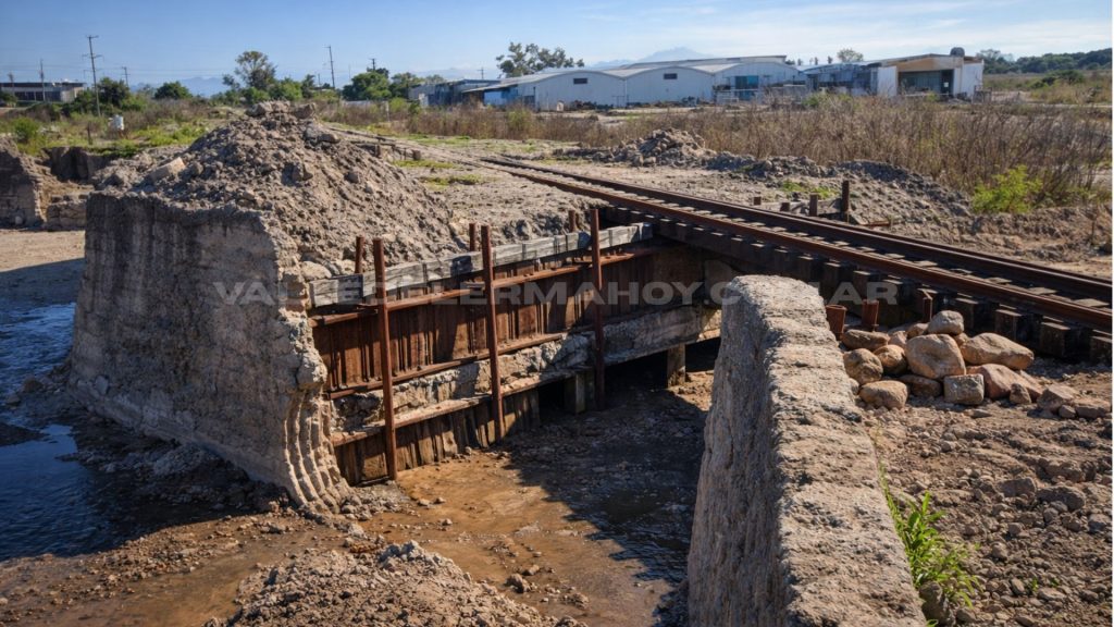El conflicto se remonta a septiembre del año pasado, cuando el municipio elevó notas formales a la Secretaría de Recursos Hídricos de la Provincia advirtiendo que la modificación de la alcantarilla ferroviaria estaba alterando el sistema de desagües pluviales. En ese sector existían originalmente dos caños de 1,8 metros de diámetro que permitían canalizar el caudal del río y amortiguar el impacto en temporada estival.
