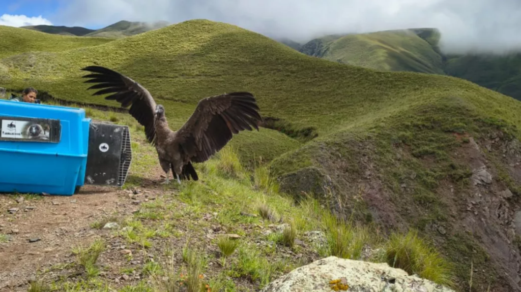 El equipo de trabajo formado por la jefa de Programa Estación de Fauna Autóctona, Luciana Borelli, y veterinarios que forman parte de la EFA fueron los responsables del proceso de cuidado, rehabilitación y liberación de ambos cóndores andinos (Vultur gryphus).